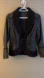 Discover timeless elegance with this black leather jacket featuring a chic tie detail. Wool lapel and seams. Split cuff detail. Perfect for adding a touch of sophistication to any outfit. Soft, supple leather. Slim fit. This jacket is a stunner!