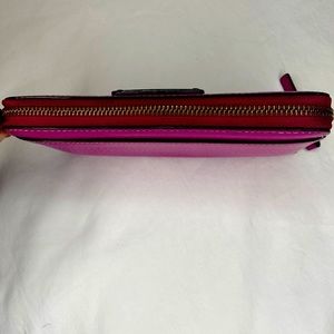 Leather Zip Around Wallet by Kate Spade in magenta. Length: 7.75", Height: 4"