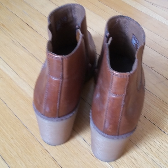 Size 12 leather ankle wedges. Worn under 10 times. Fastens via zipper onside of boots. A few very, very slight scuffs (in pictures). Clark's "Cushion" line. Very comfortable. Heel is 2 and 3/4 inches high.