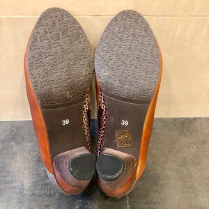 Adorable leather booties with floral embellishments. These have a comfortable low heel and fit on the large size (these are closer to a US 10). These were worn under 5 times and are in excellent condition, but do have a couple of small scuffs/scratches that can probably be masked with the right colour shoe polish (see photos).