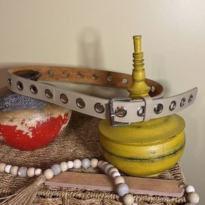 Leather belt cream ivory Silver grommet belt 34-36 B23
