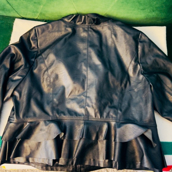 Eloquii faux leather blazer. Great quality. True to size. Zipper, no pockets. Peplum style super flattering. Just don’t wear it anymore. Good casual or to dress up.
