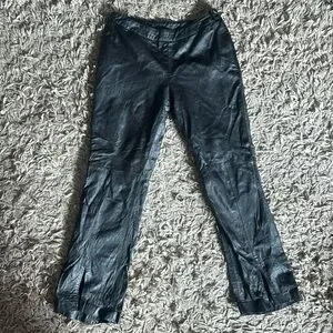 3 quarter length leather pants with flare bottoms