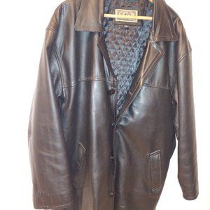Dark brown classic three button coat for men. My dad was wearing it only for Christmas each year. Perfect condition. Real leather.