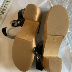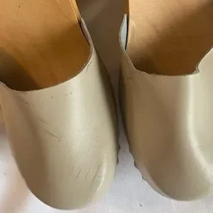 Comfortable clogs. Timelessness through wood. A Nice to have. Easy to walk with. Very light scratch as shown in the picture.