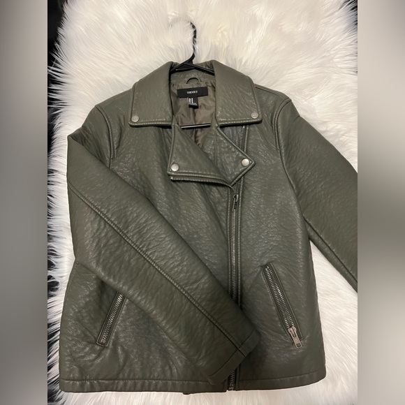 Forever21 leather coat, Military green, Size M, Never ever worn. Its too big for me.