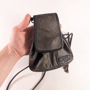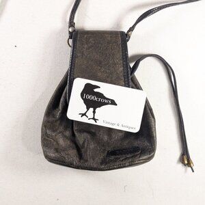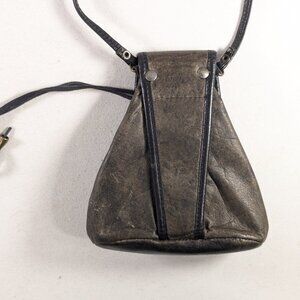 A delightful small buttery soft leather pouch by Baron, made in New Zealand in a mottled grey / brown colour. Perfect to keep your Roleplaying dice, some gems or rocks, or charms, or to finish off an outfit for a Renaissance or Fantasy fair. The leather chord is quite long and this pouch can be worn as a crossbody purse. The magnetic closure feels quite strong.