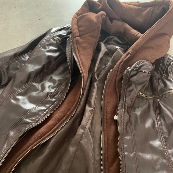 Brown, cute leather jacket! Never warn!