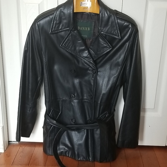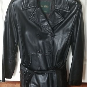 Black 3/4 length leather jacket good used condition no scratches . Belt has some wear