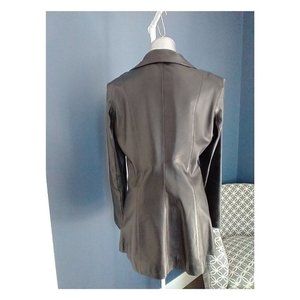 Real leather jacket, very beautiful, fitted at the waist, black, large size fits medium.
