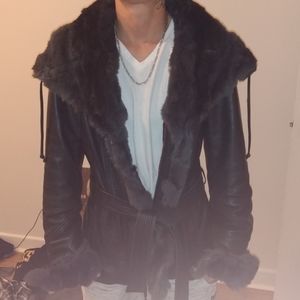 Dariner size-small, black leather with rabbit fur