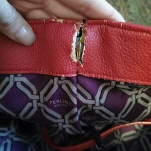 Leather perlina bag, have some damage inside see photo please for condition also it's making sounds on straps, like steel sound. The rest in very good condition.