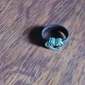 brown leather ring with western style silver plated heart