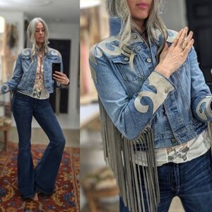Leather Fringe Denim Jacket