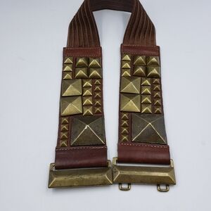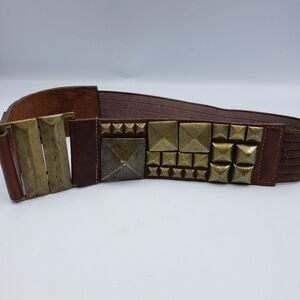 Leatherock Studded Leather with Elastic Back Belt Size Small Brown
