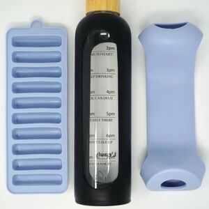 With a sleek black silicone sleeve and an extra blue one for when you want to switch it up, the L'EAULY Edge is designed for the modern woman who loves to make a statement. The convenient carrying strap means you can take it anywhere, whether you're hitting the gym or heading to the office. Plus, the time-stamped markers help you stay on track with your hydration goals all day long.