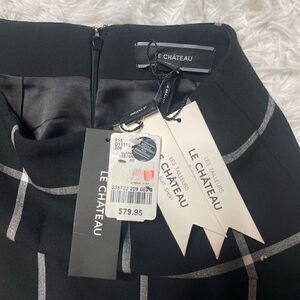 Lechateau Pencil Skirt Black White Checkered Midi Size 00 XS Lined Slit Career Office