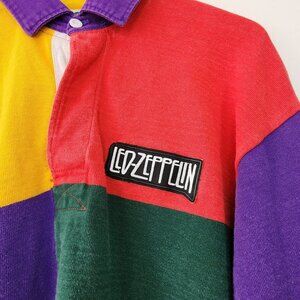 Led Zeppelin Patch Barbarian Rugby Shirt 3XL Colorblock Long Sleeve Polo VTG 90s