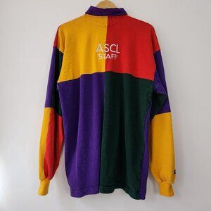 rugby shirt, long sleeve polo, Led Zeppelin shirt, Barbarian rugby wear, multicolor shirt, vintage rugby shirt, cotton shirt, casual top, patchwork shirt, unisex rugby shirt, sportswear, 90s fashion, embroidered shirt, Color Block, Vintage, 1990s, Led Zepplin, Band Patch, Barbarian, Rugby, Mens 3XL, Unique Shirt, Pre-shrunk cotton, 100% Cotton
