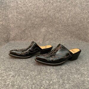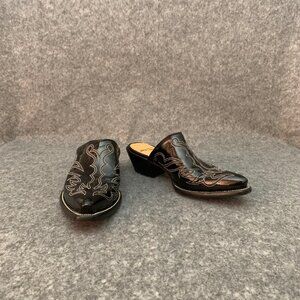 Leddy Vaquero Women’s Black Patent Leather Western Cowboy Mules Slip On Sandals