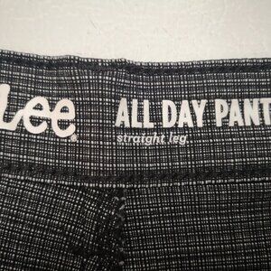 Lee All Day Pant Ladies Size 12 Medium Straight Legs Dark Grey Plaid Pants