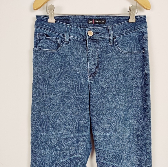 Lee Classis Fit Women's Paisley Print Jeans Size 6 Blue Denim Pants