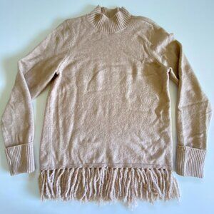 Lee Cozy Fringed Hem Fawn Sweater Sz M