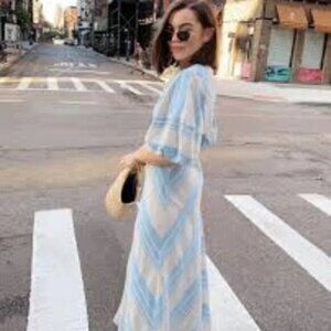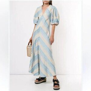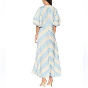 Lee Mathews Tilda Chevron Linen Blend Maxi Dress in Celadon Blue 4