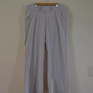 Do you love those wide waistbands that aren't under your ribcage? So much more flattering than high-rise pants, with a nice straight leg and deep hem on cuffs. In very good condition. Waist 36" Inseam 31".
