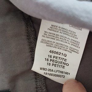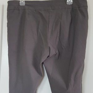 Worn twice then laundered and put away. Lee pull on Sculpting Pull On Skimmer Capri Pant in size 16 petite. Color is "dazed", which is a heathered med grey. Mid rise, nice stretch.