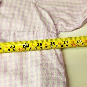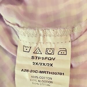 Features: Lee Rider Checked Blouse, Size 2X. Light Pink and white, button down, long sleeves.
