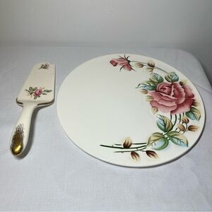 Lefton Americana 12 ½" cake plate 980 & AYNSLEY antique rose server