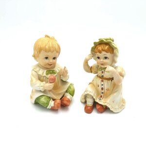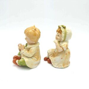 This is a pair of vintage porcelain figurines from the Lefton China company, depicting a boy and girl, often referred to as "Piano Babies."
