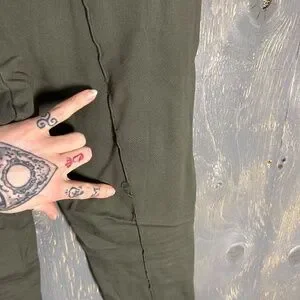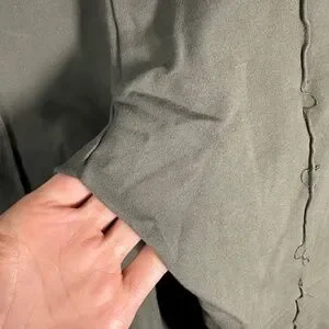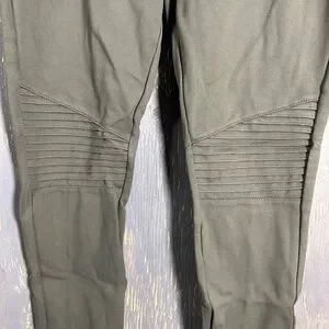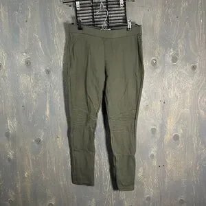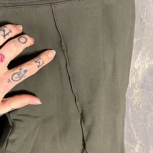 Green legging style pants, some stitching coming undone on the seems on the back of pants. Ribbed stitching in the knees and on the lower back.