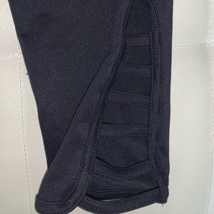 Very cute and comfortable black leggings. They are cropped and have a nice design and the bottom of each leg. Fits perfectly. Great for any season!