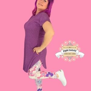 Original Angele Couturier design. White leggings with purple and pink floral design. Only one made in the world make it yours.