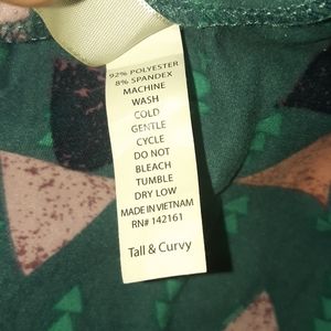 Soft and super comfy LuLaRoe Leggings are a polyester/spandex material. Tall and Curvy fits sizes 12-22.