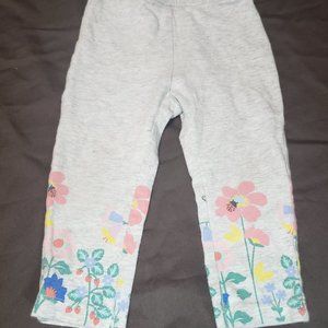 Leggings Old Navy Floral Design Lightweight Elastic Waist Grey Pink 12-18 Months