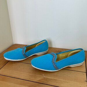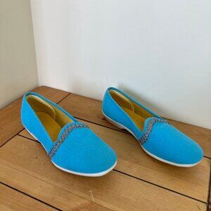 Leisure Treads Blue Felt Slippers Women's Vintage House Shoes White Rubber Soles