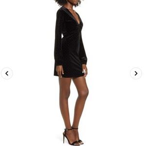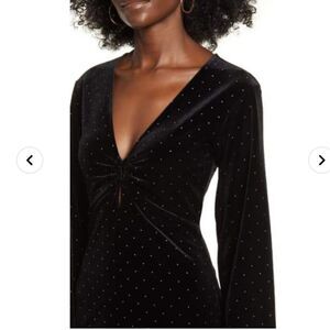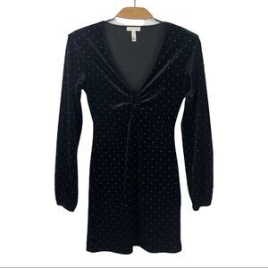 Leith Black Velour Studded Long Sleeved Ruched Mini Dress Size S