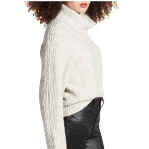 A softly ribbed turtleneck features drapey dolman sleeves for a clearly relaxed fit.