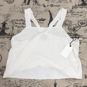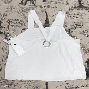 A micro-ribbed knit creates a streamlined look in this square-necked top that adds an oversized grommet anchoring the straps in back. - Slips on over head - Square neck