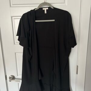 Flattering wrap dress with cute ruffle and flouncing around skirt line and arms. Deep v neck line and ability adjust waist based on needs.