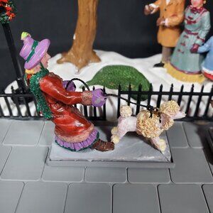 Lemax village, Christmas display, animated scene, winter village, dog walkers, holiday decor, vintage Christmas, Victorian Christmas, resin village, collectible holiday, festive mantel, tabletop display, Ch