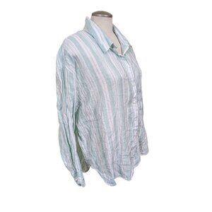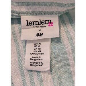 This Lemlem by Liya Kebede X H&M shirt is perfect for any casual or travel occasion. The collared neckline and button closure give it a relaxed fit, while the long sleeves and lightweight 100% linen material make it breathable and comfortable for the summer, fall, or spring seasons. The aqua/white striped pattern adds a coastal and beachy touch, making it a great addition to any Lagenlook or minimalist wardrobe. It also comes with a pocket for convenience.The shirt is available in women's size XL and is suitable for regular size types. It is not handmade and is not vintage. The tunic style and brand name make it a great choice for anyone looking for a stylish and comfortable shirt. Whether you're going on a trip or just running errands, this Lemlem shirt is perfect for any occasion.