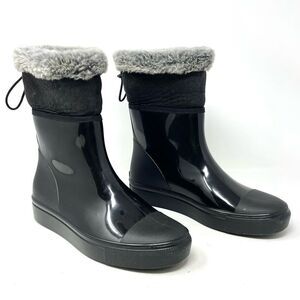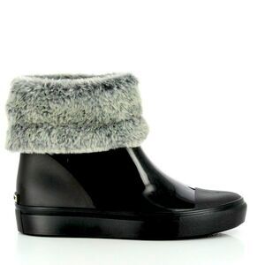 Lemon Jelly Irena Black Rubber Fur Trim Ankle Boots Size 37/5.5
