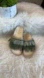 Step out in style with these chic slides. Featuring a unique green feather embellishment, these shoes add a touch of elegance to any outfit. Perfect for casual outings or special occasions.