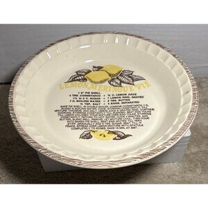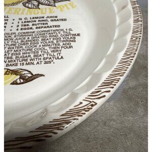 Lemon Meringue Pie Recipe Pie Dish Plate Ceramic USA Yellow Brown 11"
