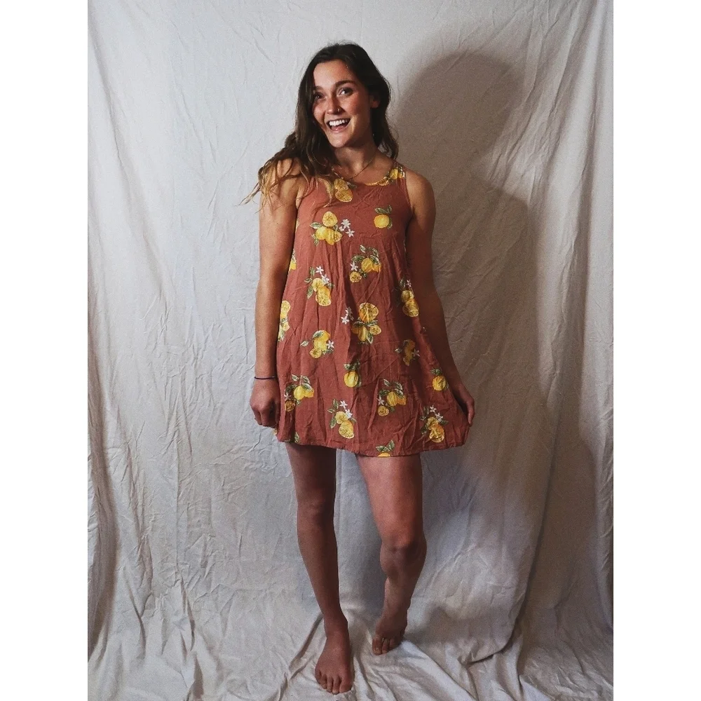 Adorable baby doll mini dress with a fresh lemon pattern. It's in perfect condition with no flaws, although it could use a steam.