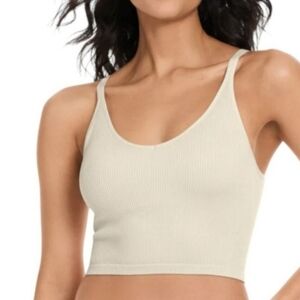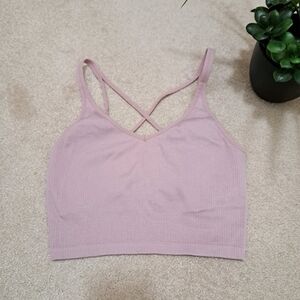 Lemon Set Of 2 Ribbed Yoga Bras Women's Size Large Cream Pink Seamless Lounge